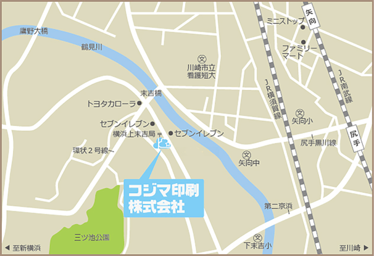 • 左側に黄色い建物が「コジマ印刷」の目印です。